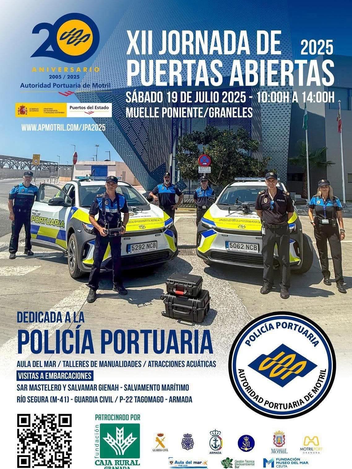 El Puerto de Motril ha celebrado su XII Jornada de Puertas Abiertas, dedicada este año a la Policía Portuaria y patrocinada por la Fundación Caja Rural. El público asistente ha avalado con su presencia las distintas actividades que se han desarrollado en los muelles de Poniente y Graneles,...